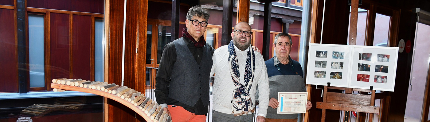 José Luis López Romeral, natural de San Martín de Montalbán, aporta a la muestra la obra «Las lijas». Esta pieza se enmarca en un contexto especial para el pintor, quien recientemente ha conmemorado cincuenta años de trayectoria artística (1975-2025). Su trabajo se caracteriza por un lenguaje propio que oscila hacia un realismo mágico, visible en series anteriores como «Los Astronautas» o «El Apostolario».