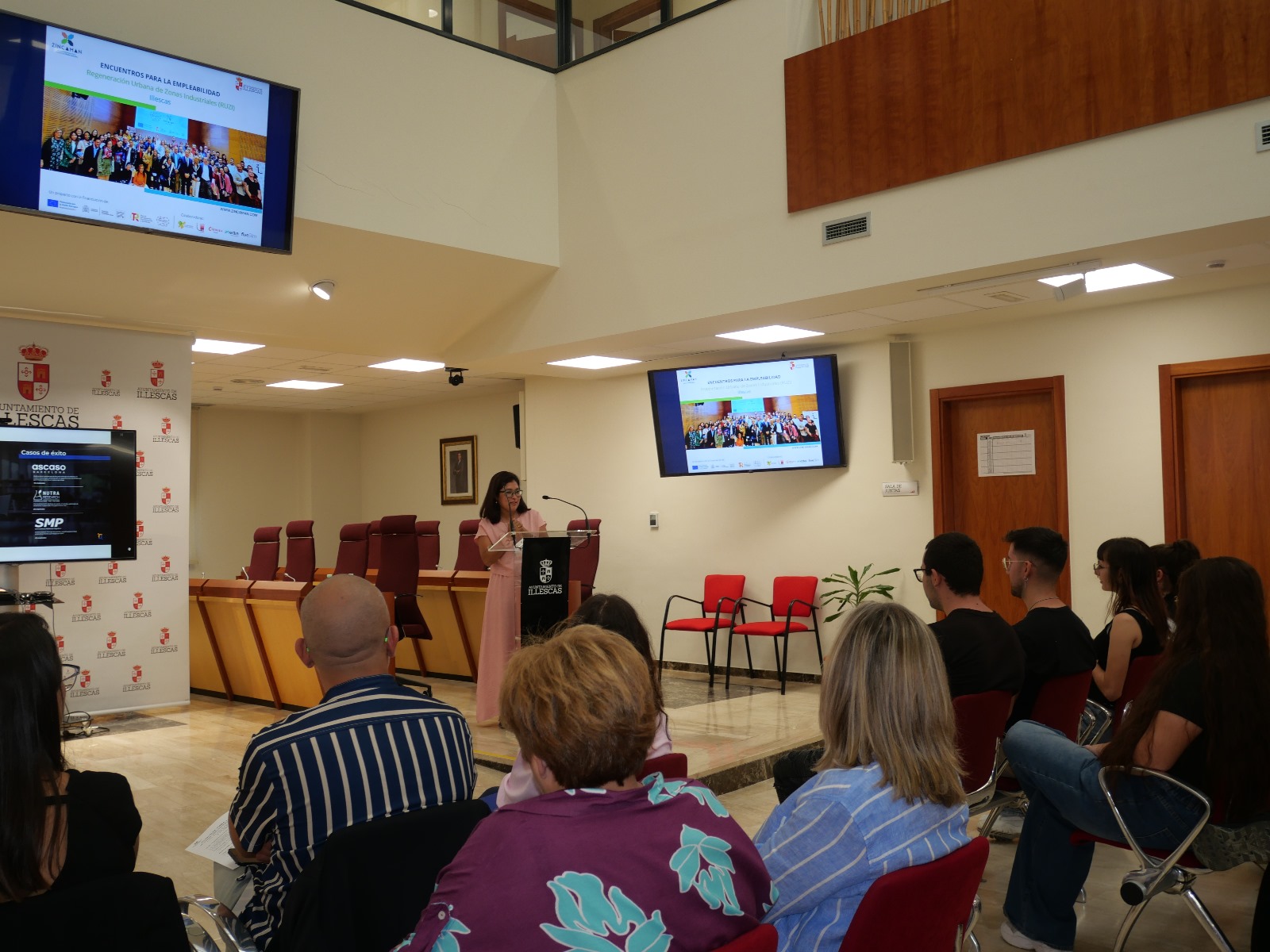 En la sesión han intervenido José Manuel Tofiño, alcalde de Illescas; Nuria Muñoz, presidenta de la EUCC de Plataforma Central Iberum y vicepresidenta de ZINCAMAN por Toledo, D. Antonio Cifuentes, director del proyecto RUZI de ZINCAMAN, y Miguel Ángel Iniesta, director provincial del SEPE en Toledo, entre otros, así como miembros de empresas de la zona adheridas a este plan de empleo.