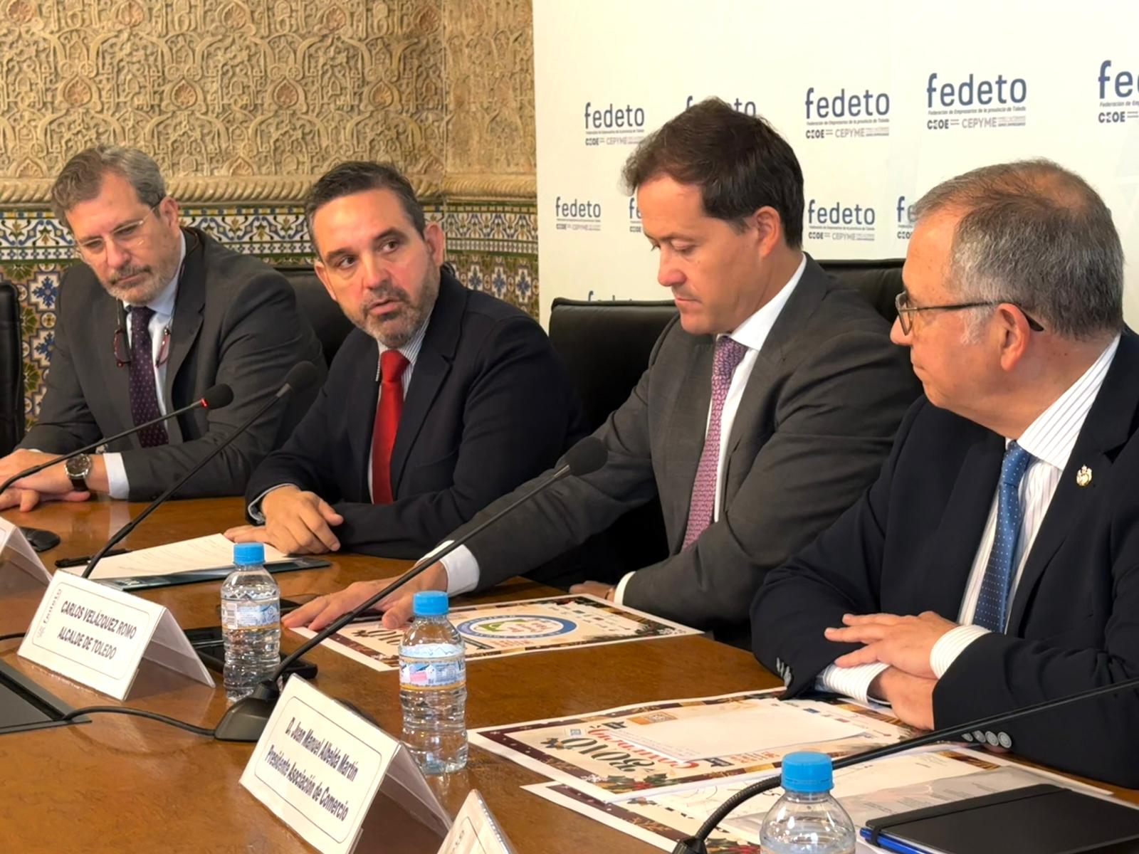 El vicepresidente provincial, Joaquín Romera, ha participado en la presentación celebrada en la sede de FEDETO, junto al alcalde de Toledo, Carlos Velázquez; el concejal de Empleo y Promoción Económica, Juan Marín; el secretario general de FEDETO, Manuel Madruga; y el presidente de la Asociación de Comercio de la Ciudad de Toledo, Juan Manuel Albelda.