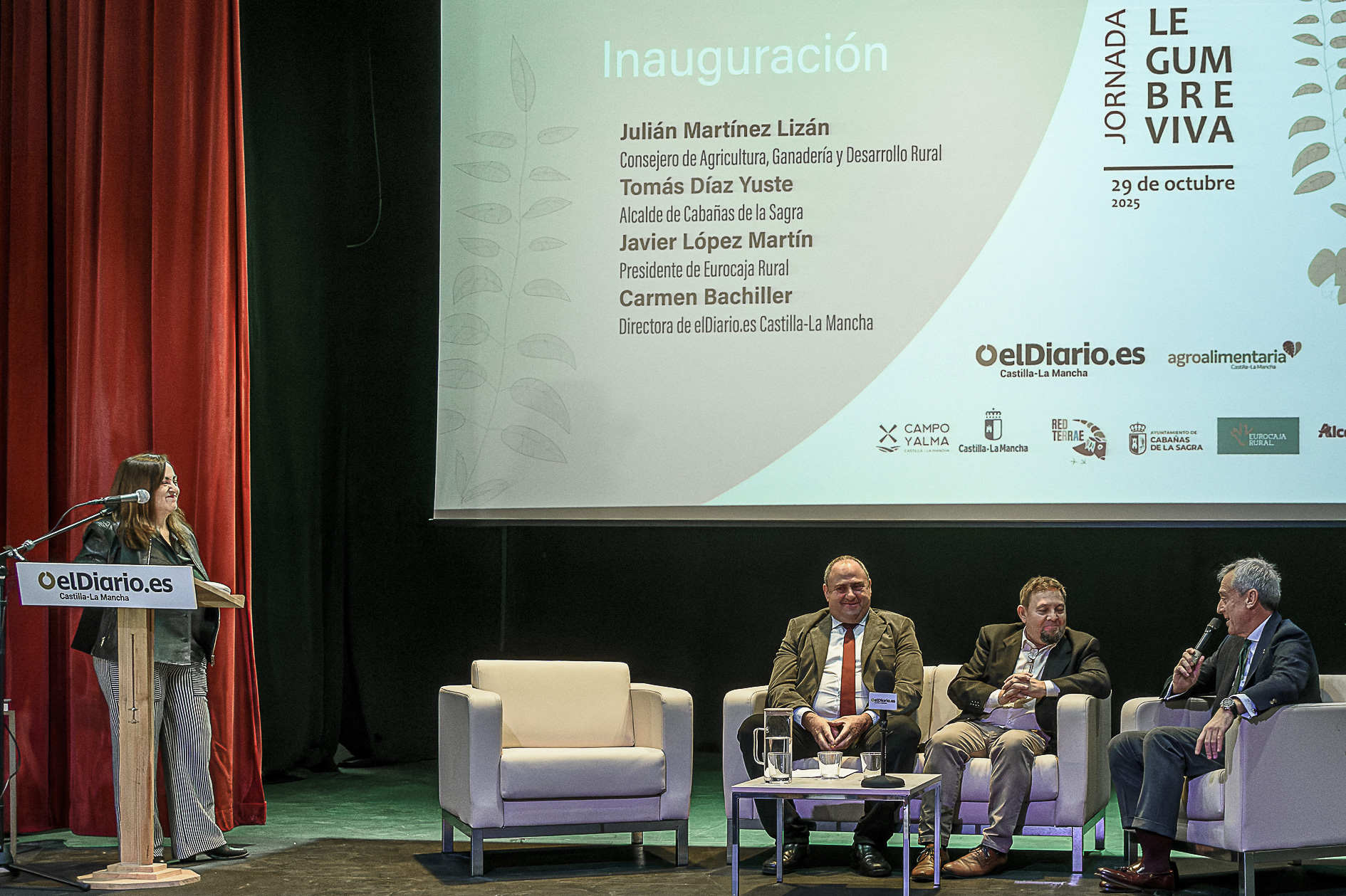 La jornada ha comenzado a las 10:00 horas con la inauguración oficial, presidida por Julián Martínez Lizán, consejero de Agricultura, Ganadería y Desarrollo Rural de Castilla-La Mancha; Tomás Díaz Yuste, alcalde de Cabañas de la Sagra; Javier López Martín, presidente de Eurocaja Rural; y Carmen Bachiller, directora de elDiario.es Castilla-La Mancha.