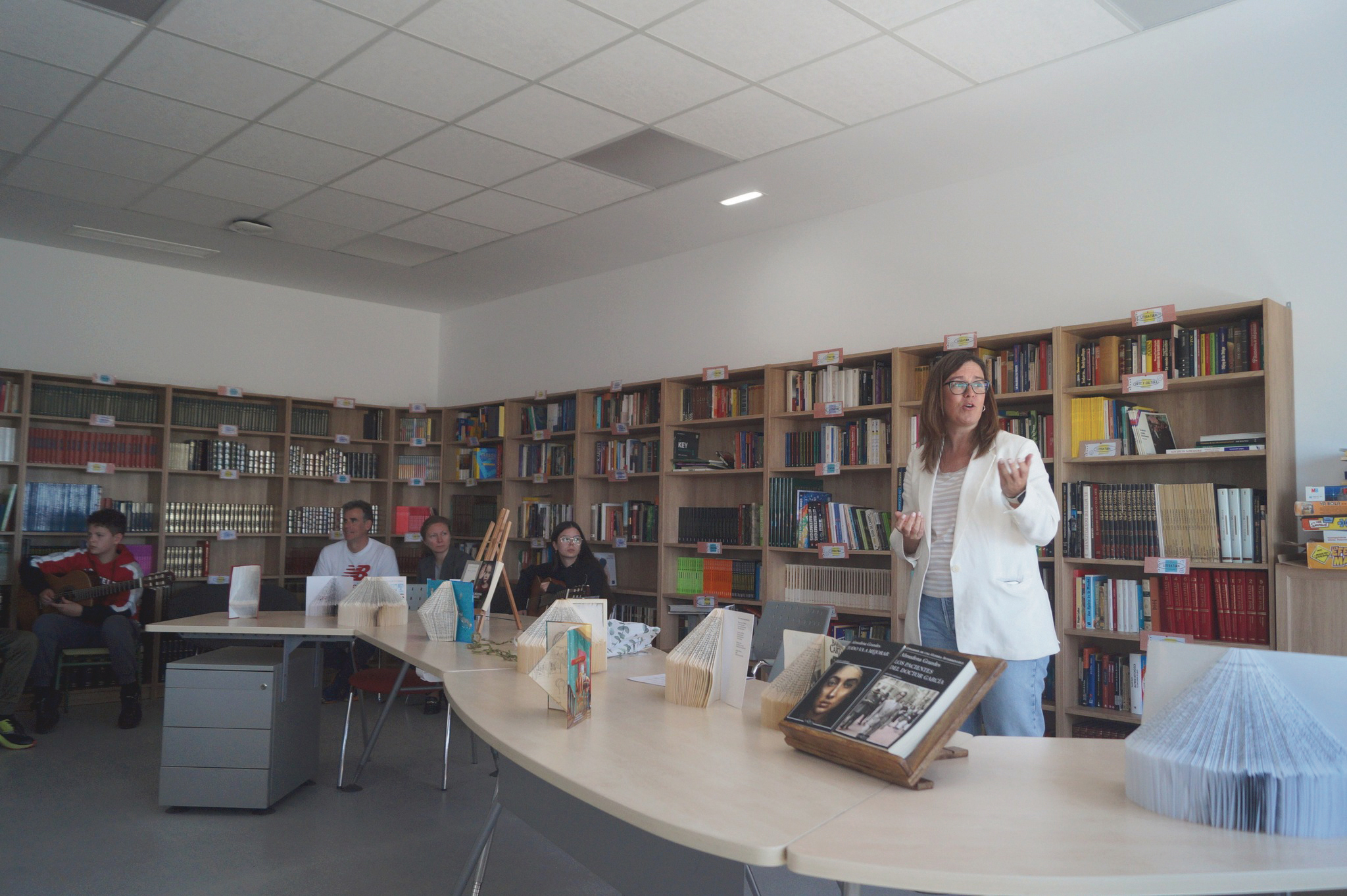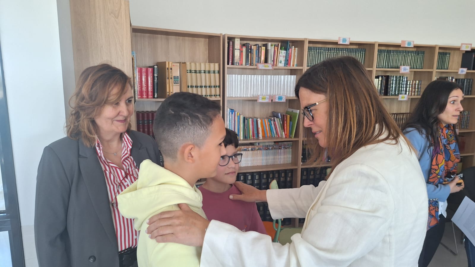 Al comienzo del acto, la consejera era la encargada de estrenar un libro en blanco que irá recogiendo la historia viva de esta recién inaugurada biblioteca, y en el que también dejaban su huella el alcalde, Félix Gallego, Úbeda, representantes del AMPA y alumnos en representación de sus compañeros.