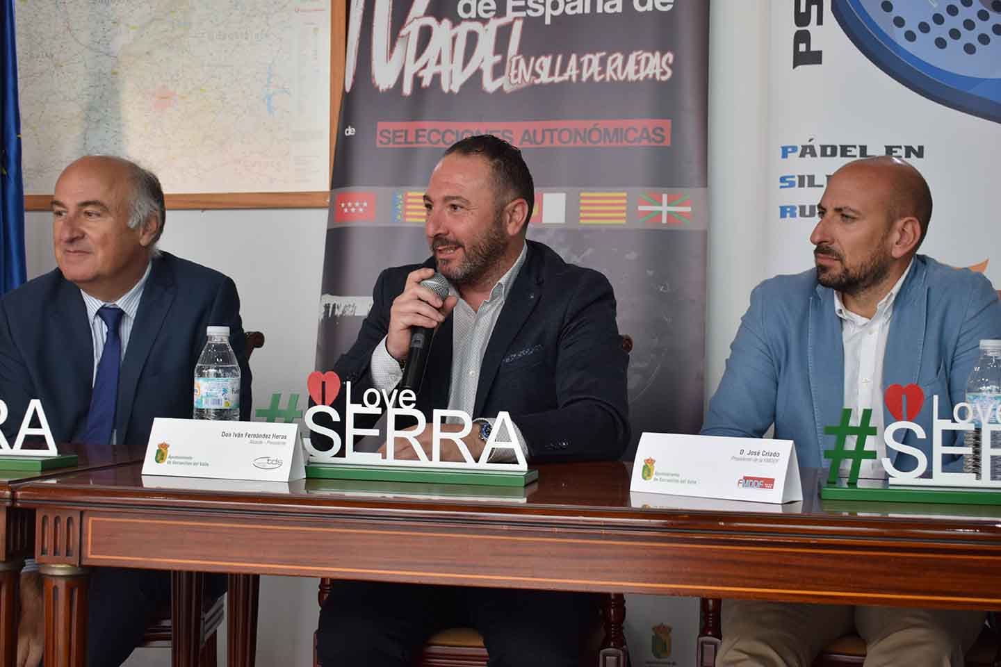 La clara apuesta de Serranillos por el deporte continúa su curso. El pasado martes 3 de mayo tuvo lugar en el Salón de Plenos del Ayuntamiento la citada sesión de la IV Edición del Campeonato de España de Pádel en silla de ruedas de selecciones autonómicas, en la que estuvieron presentes, entre otros, José Criado, presidente de la Federación Madrileña de Deportes para Personas con Discapacidad Física, Fernando Benzo, Director General de Deportes de la Comunidad de Madrid, e Iván Fernández Heras, Alcalde de Serranillos del Valle.