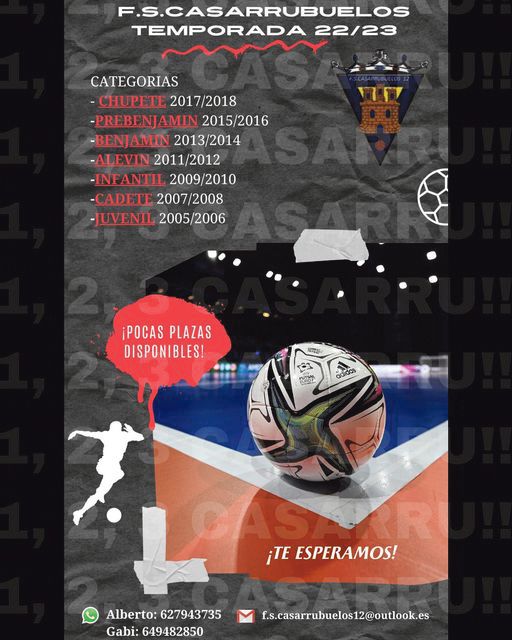 Es uno de los eslóganes del Ayuntamiento, “Casarrubuelos Es Deporte”. Son muchas las disciplinas deportivas que se pueden practicar en Casarrubuelos, y desde el Consistorio lanzan la pregunta a sus vecinos: “tú, ¿ya has elegido la tuya? Hay opciones para hacer deporte para todas las edades y tipos de personas. En septiembre comienza la nueva temporada deportiva ¡infórmate!”. El Club Gimnástico Makai ofrece gimnasia para los niveles Escuela, Autonómico y Nacional; el Triatlón HUNO cuenta con con grupo de cadetes e infantiles de competición y para ara inscribirse hay que mandar un mail a triatloncasarrubuelos@gmail.com; Iru-Team Casarrubuelos y Por Sport Griñón han dado un cambio radical al gym para empezar con más ánimo todavía; en gym.casarrubuelos@gmail.com te informarán del área Fitness El Prado; y la EFS Casarrubuelos también está esperándote.