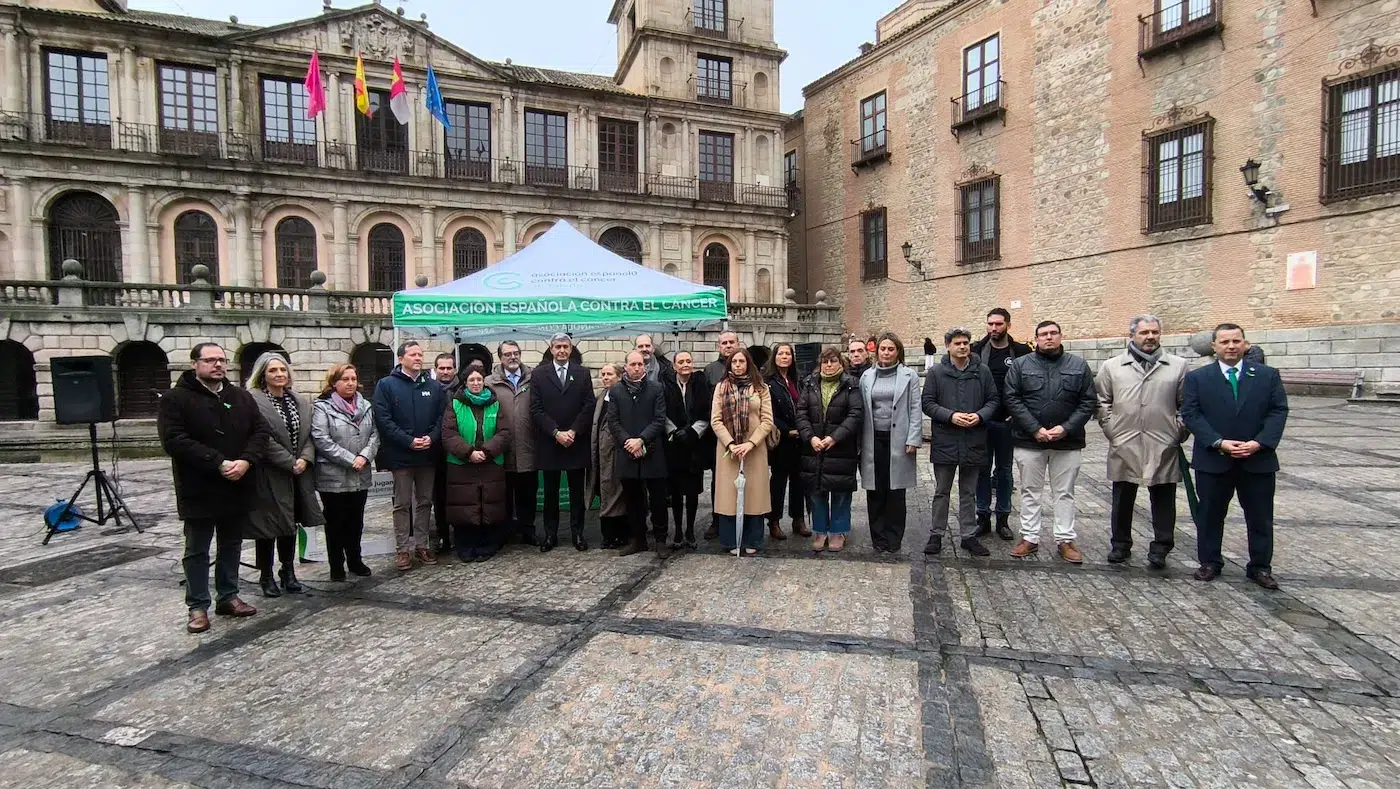 El Gobierno de Castilla-La Mancha ha participado en Toledo en el acto conmemorativo del Día Mundial contra el Cáncer organizado por la Asociación Española contra el Cáncer, celebrado en la plaza del Ayuntamiento y centrado en la lectura del manifiesto reivindicativo de esta jornada. En el acto han estado presentes el delegado de la Junta en Toledo, Álvaro Gutiérrez, y el delegado provincial de Sanidad, Jaime David Corregidor, junto a representantes de la asociación y de distintas instituciones locales y provinciales.