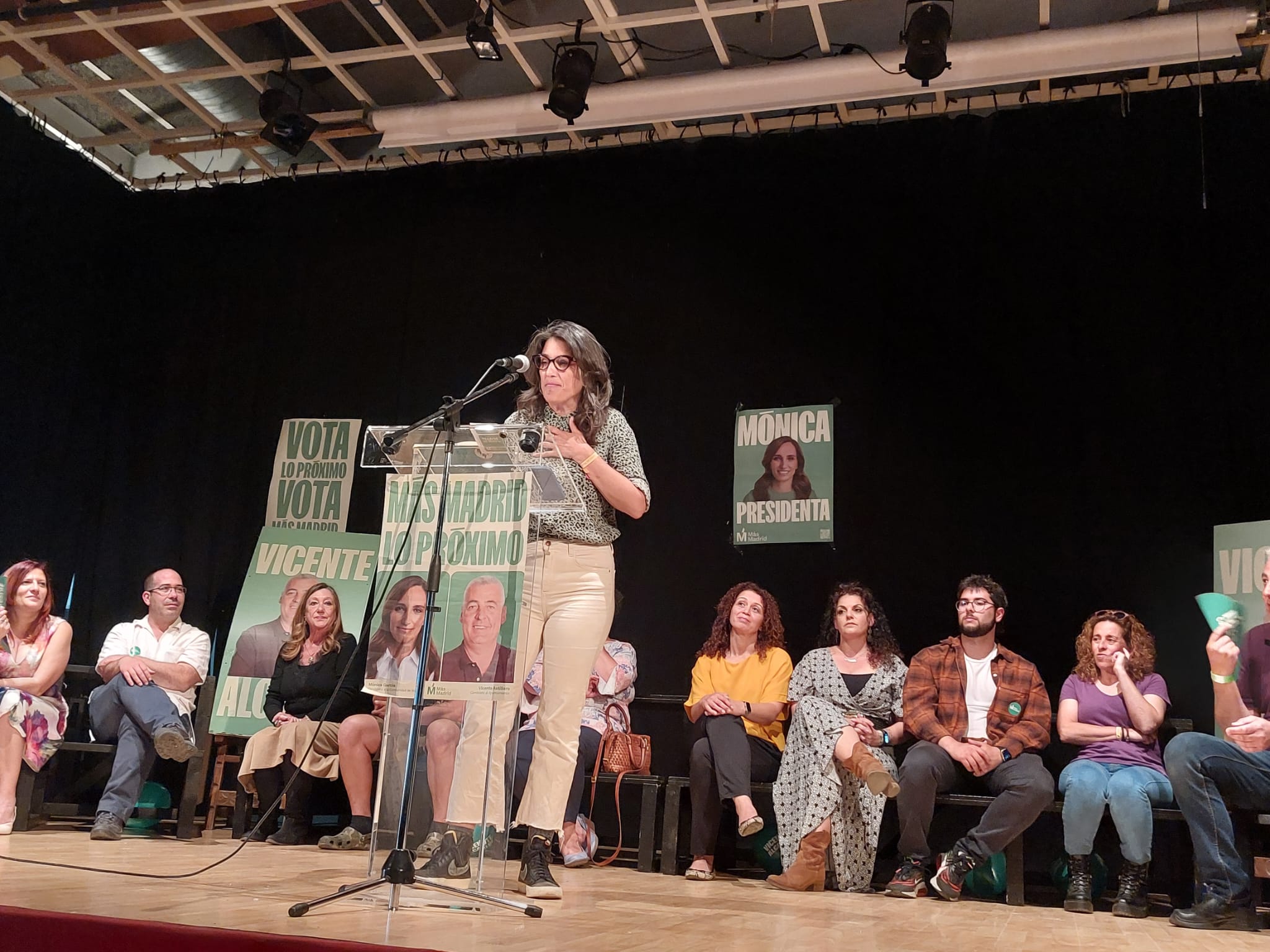 “Casarrubuelos es uno de los pueblos más pequeñitos de la Comunidad de Madrid, pero hoy comparten con vosotros un proyecto de ciudad y un proyecto de la Comunidad de Madrid” comenzaba el presentador de un acto al que además del alcalde y los compañeros de su lista para estas elecciones, asistía Manuela Bergerot, candidata a la Asamblea de Madrid y secretaria de organización de Más Madrid.